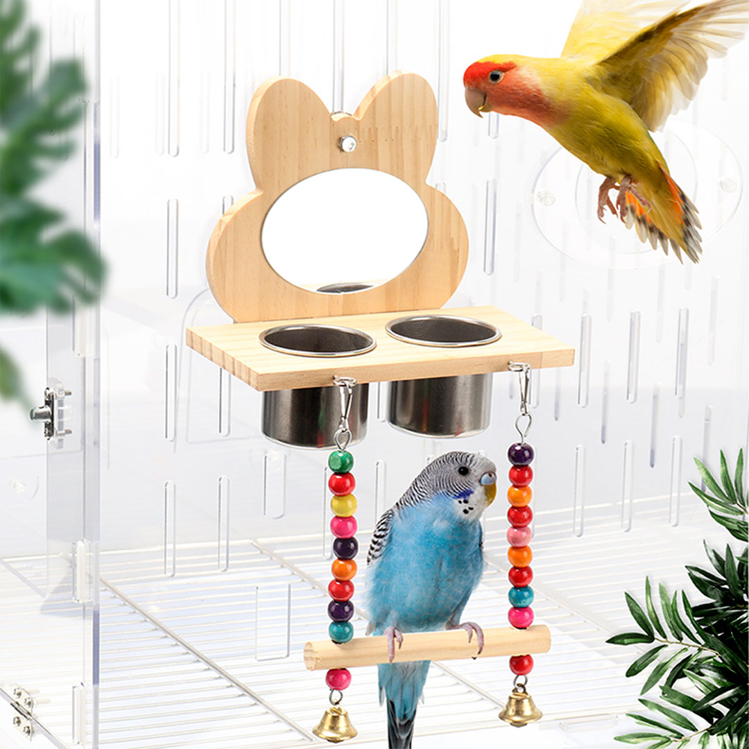 انت تقيم: مراية و صحنين طعام مع قاعدة للوقوف للطيور