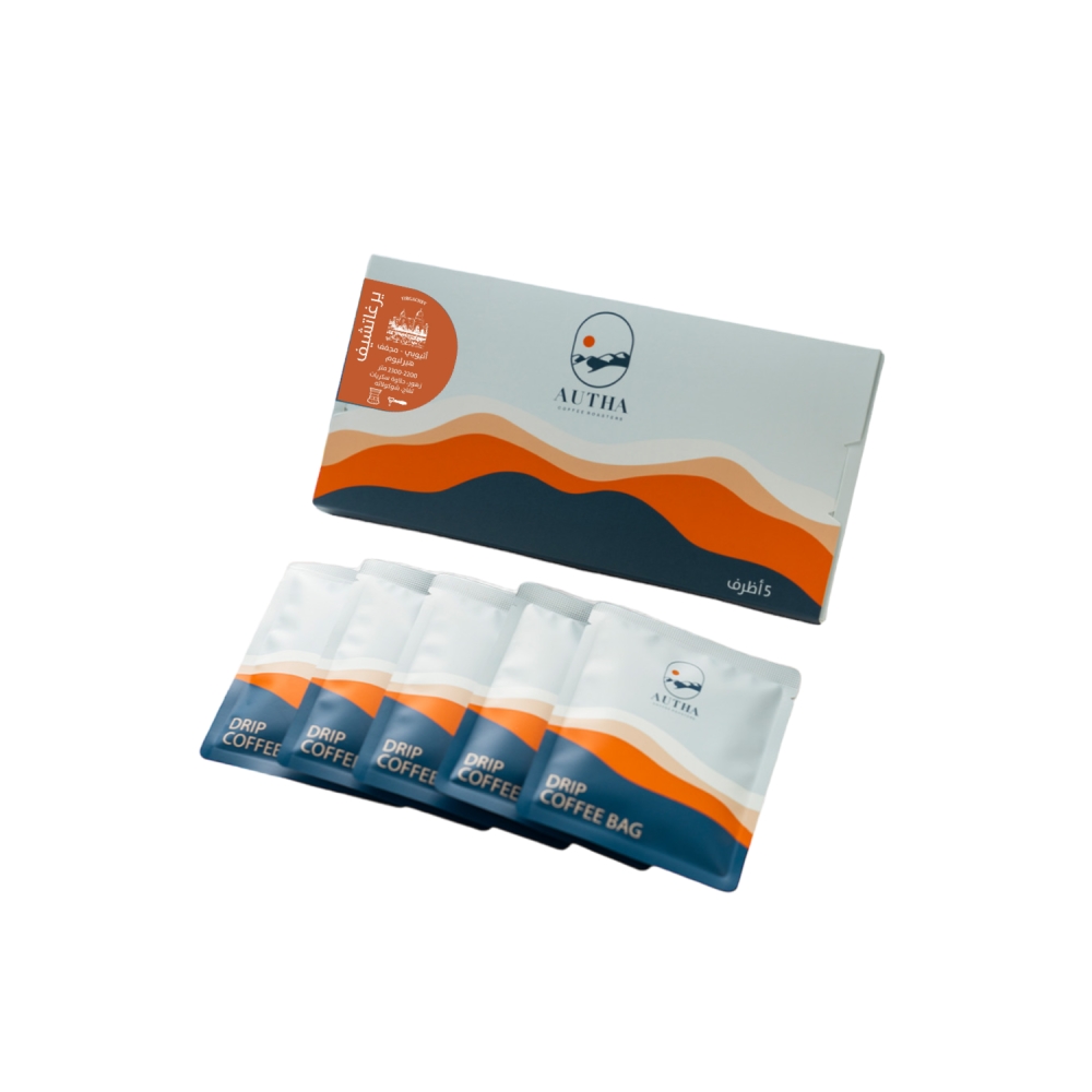 - يحتوي كل ظرف على فلتر للتقطير لكمية 15 جرام قهوة مختصة مطحونة وجاهزة للتقطير لكوب واحد.