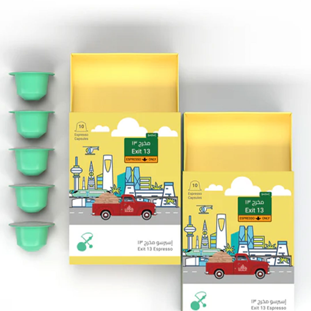 كبسولات مخرج 13 تأتي بنفس الخلطة الأصلية المستعملة في خلطتنا "مخرج 13" مكونة بمحاصيل من الجافا وقواتيمالا وإثيوبيا. تتميز هذه الخلطة بحلاوة عسلية واضحة وقوام كريمي ثقيل كالدبس ونكهة الفاكهة المجففة وعبق الكاكاو الفاخر ممزوج بالحطب والعود. وتتناسب مع مكائن كبسولات القهوة مورنينق و نيسبريسو