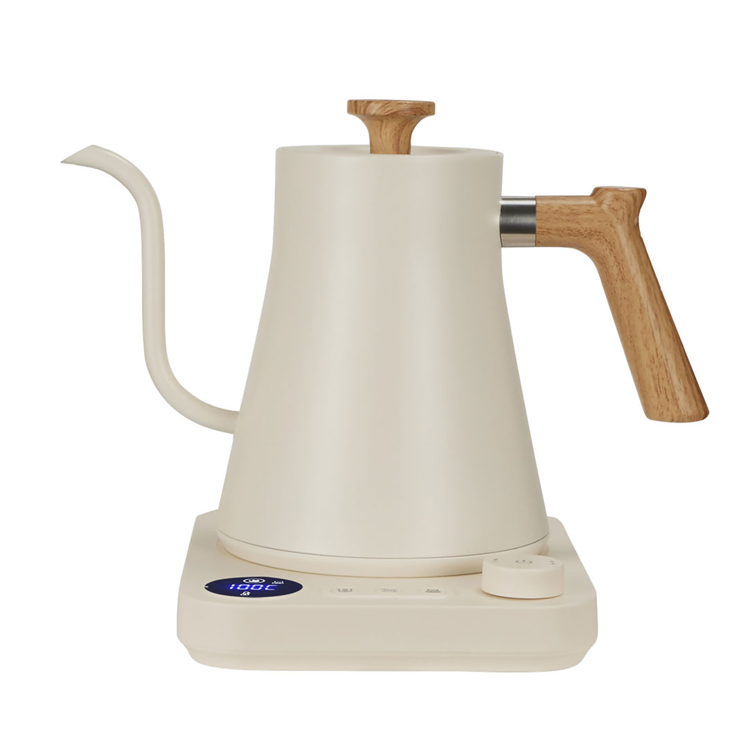 غلاية كهربائية بابريق تقطير و قاعدة للتحكم بدرجة الحرارة سعة 900مل ابيض خشبي