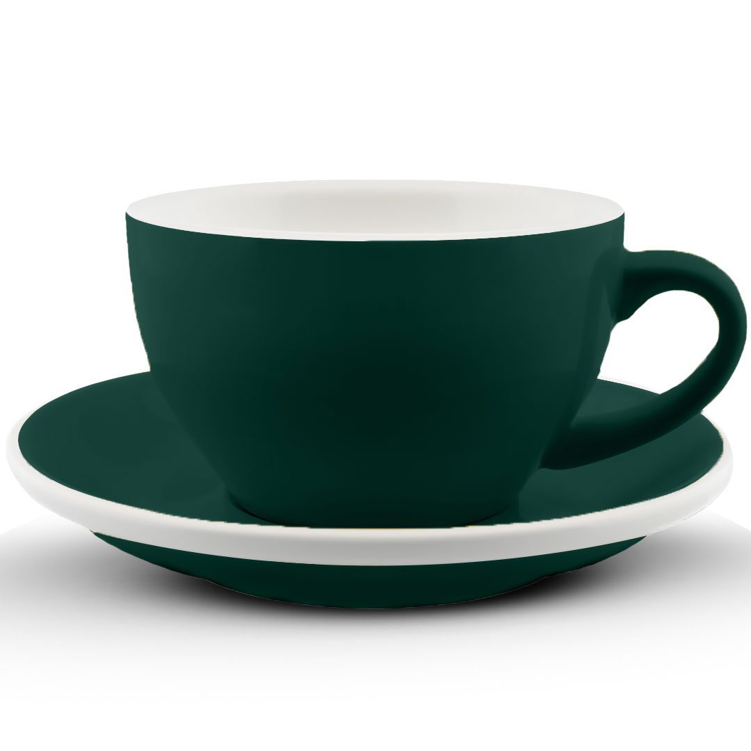 كوب قهوة سيراميك مع صحن 350مل لون اخضر غامق