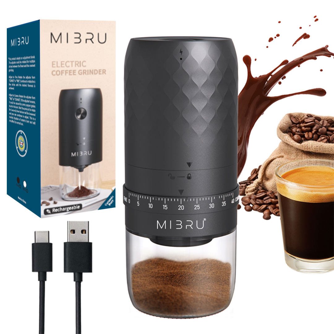 طاحونة قهوة كهربائية قابلة للشحن من براند "MIBRU"، مصممة لتوفر طحنًا دقيقًا ومريحًا أثناء التنقل، وهي مثالية لعشاق القهوة الذين يجمعون بين الراحة والجودة.