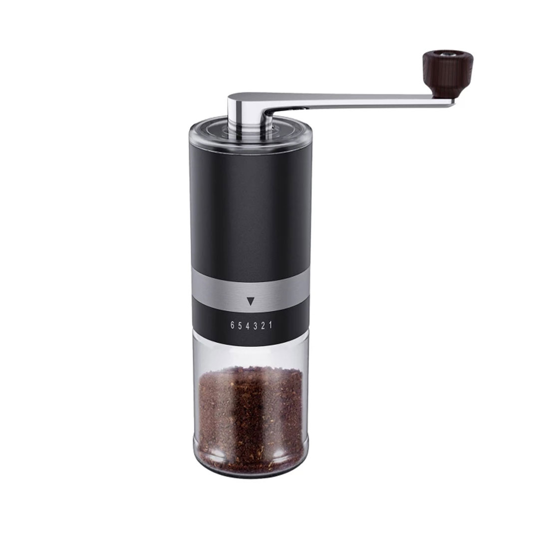 خلّي مشروب القهوة يصير واحد من روتينك اليومي مع طاحونة قهوة يدوية بوعاء زجاجي لون أسود