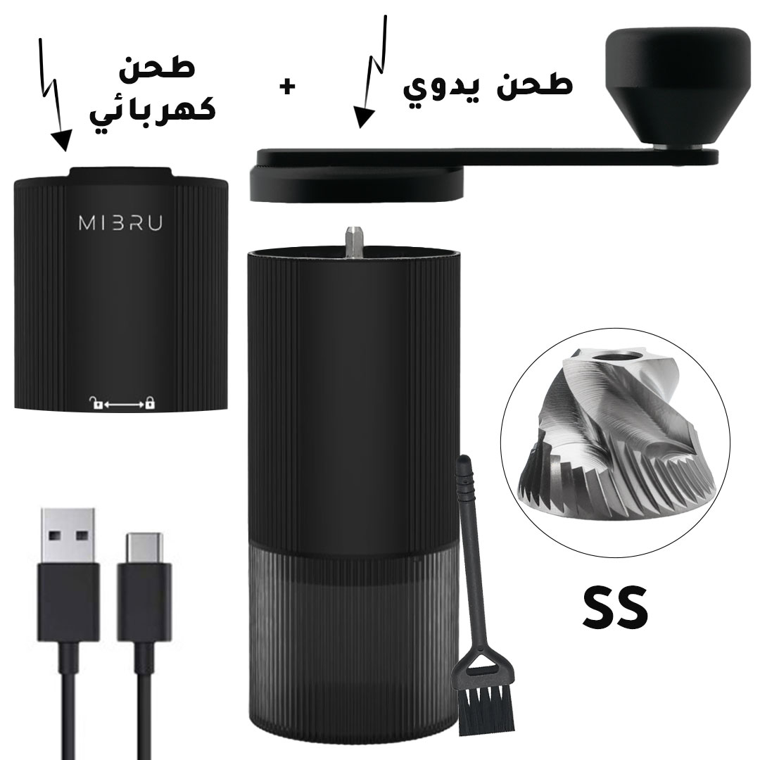 مطحنة قهوة كهربائية من ميبرو بنواه ستيل مع ساعد للطحن اليدوي SS
