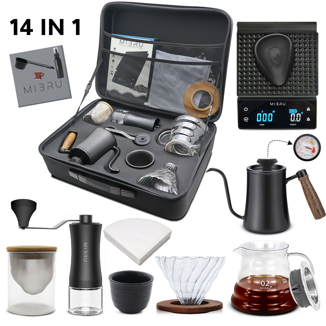 بكج مجموعة 14 في 1 لتحضير القهوة المقطرة بطريقة V60 معG4 حلقة خشبية
