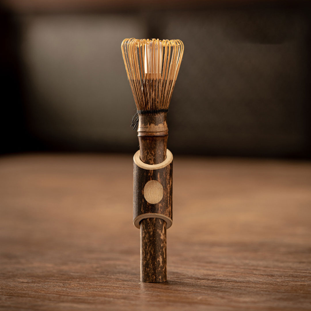 "مخفقة شاي الخيزران: أداة مهمة لخفق الماتشا. مع مقبض طويل، أكثر ملاءمة للاستخدام من خفاقة الشاي ذات الطول العادي.