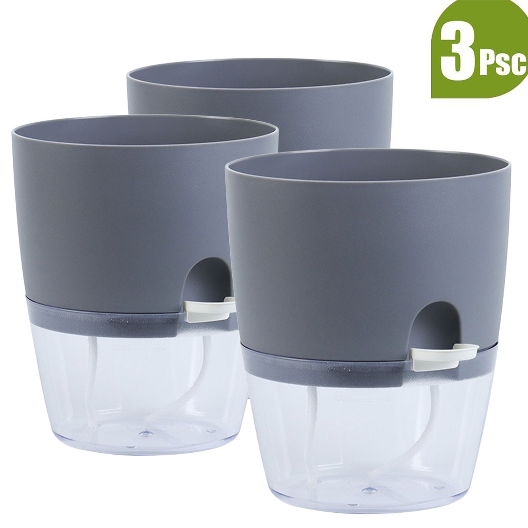 مجموعة من 3 احواض نباتات زاتية الري عبر فتيل قماشي خاص يمتص الماء من الحوض السفلي للتربة في الاعلى