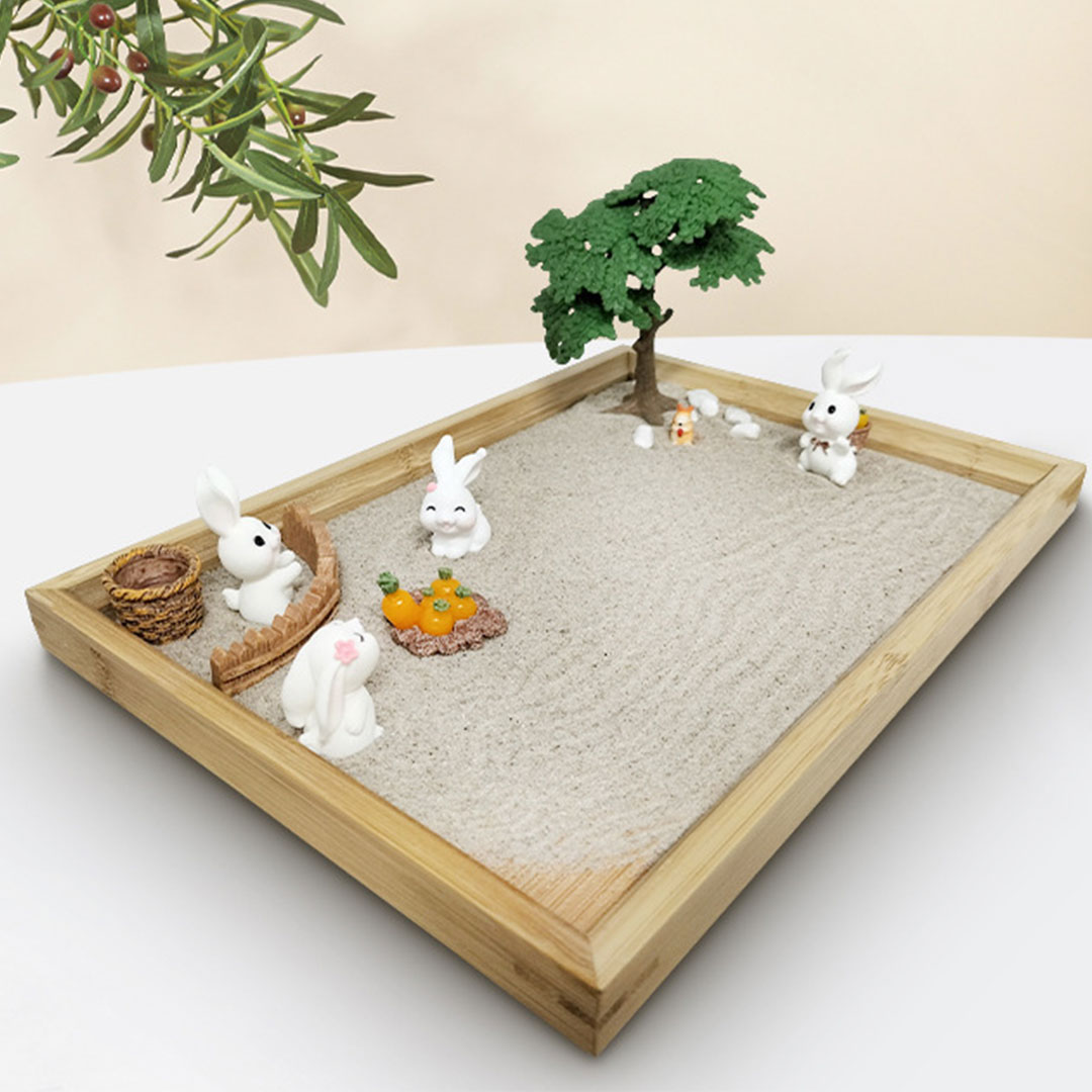 مجموعة تشكيلية مع رمل و ادوات للاسترخاء و تصفية الذهن بشكل مستطيل