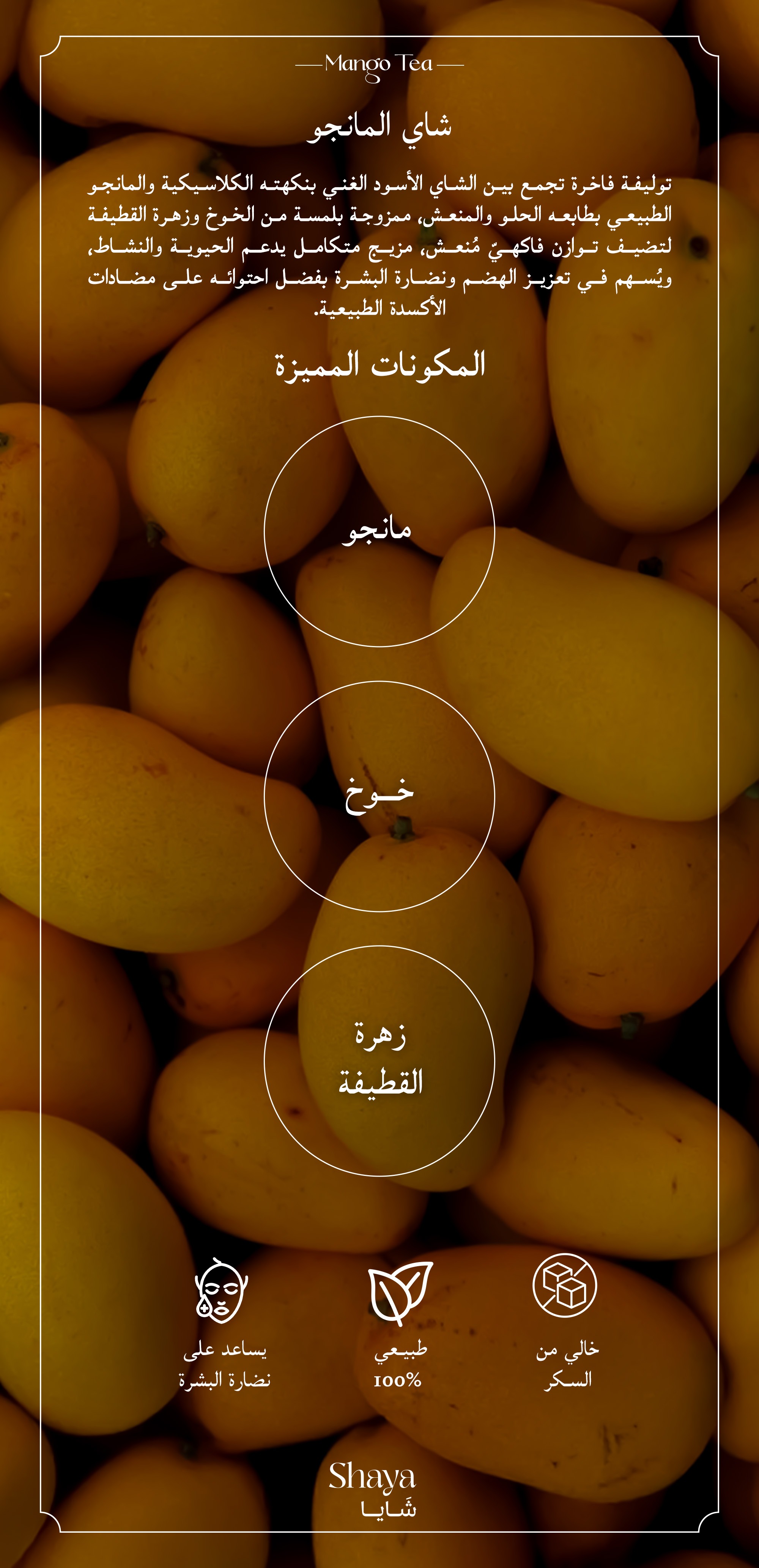 يتكون من فاكهة المانجو والشاي الأسود الطبيعي ليمنحك لحظة الانتعاش التي تستحقها.