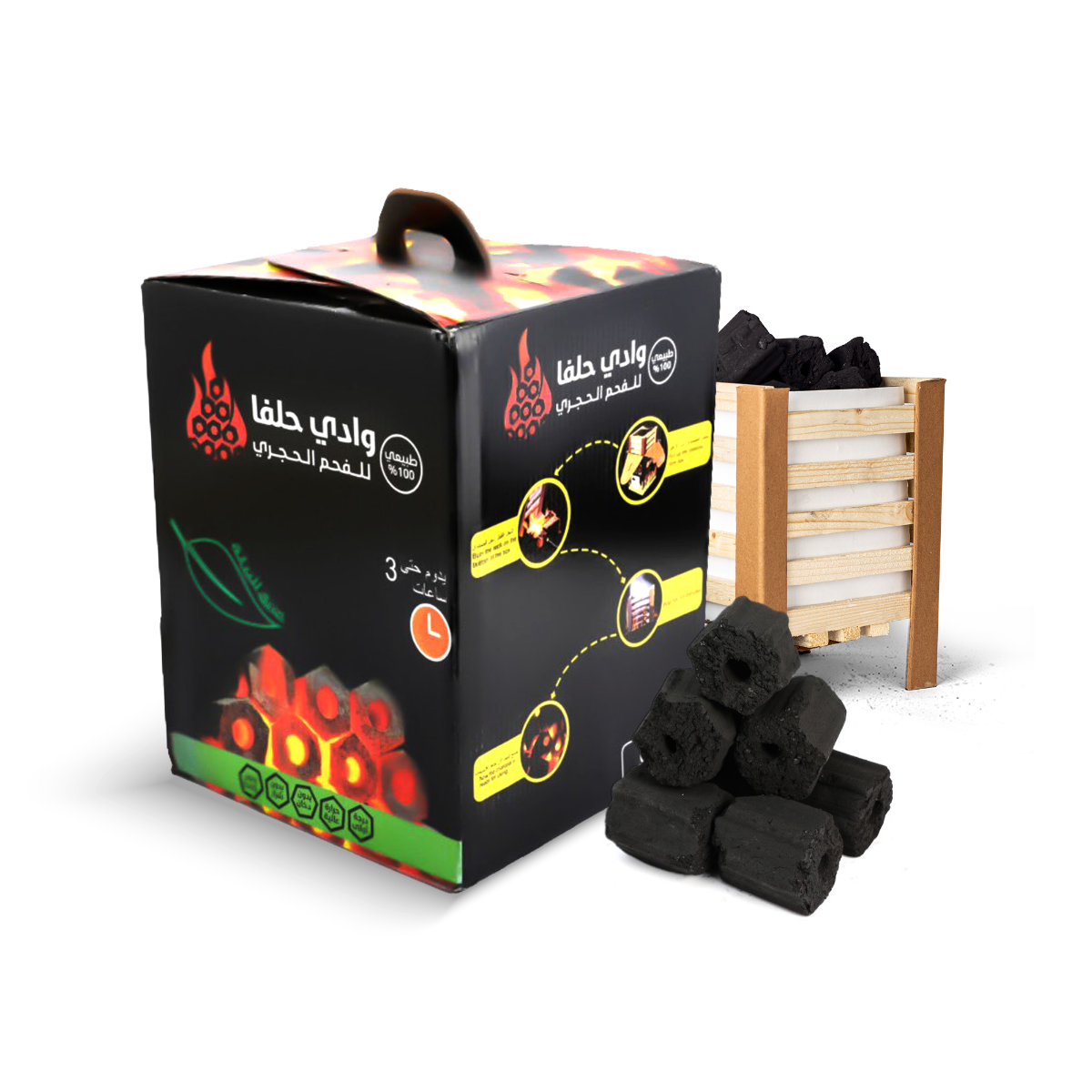 فحم طبيعي 100% غير ضار بالصحة العبوة 2 كيلو من شجر الصنوبر ذاتي الاشتعال وسهل الاستخدام مناسب للشواء أو التدفئة .