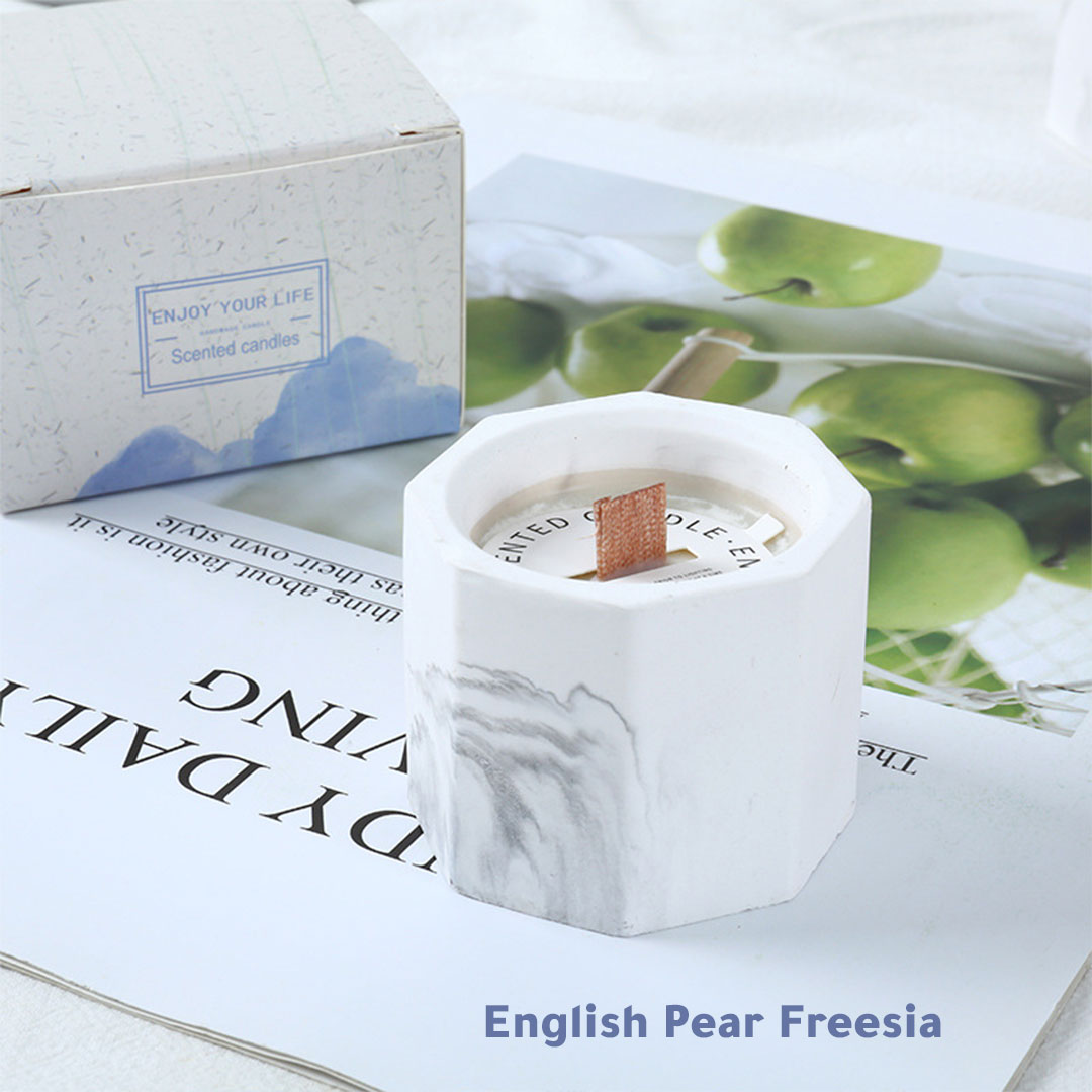 - يتميز بفتيل خشبي يمنح تأثيرًا جماليًا وصوت مهدئ أثناء الاحتراق.