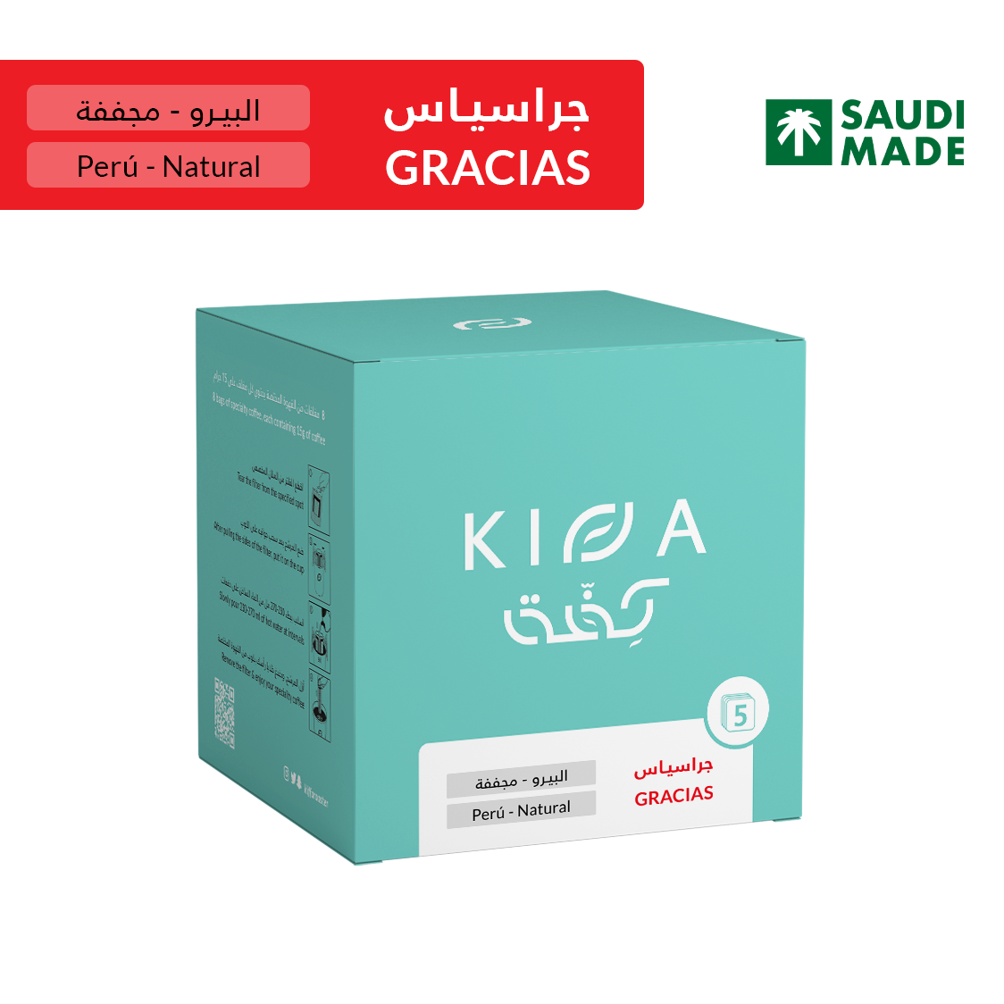 ويحتوي كل ظرف على 15 جرام من القهوة المختصة المغلفة بعناية للحفاظ على الجودة والنكهة الغنية ، ويمكنك الإطلاع على وصفة التحضير اللازمة خلف المنتج .