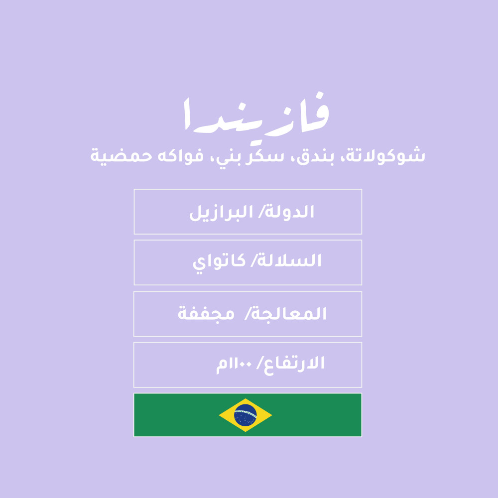 تميز محصول فازيندا بقوامه الثقيل الذي يجعله محصول مثالي لمشروبات الإسبريسو بالحليب مثل الكابتشينو والكورتادو ومشروبات اللاتيه. بإيحاءات متناغمة من الشوكولاته والمكسرات وقليل من حمضية الليمون بإمكانك تحضير أنواع عديدة من المشروبات الباردة والحارة.