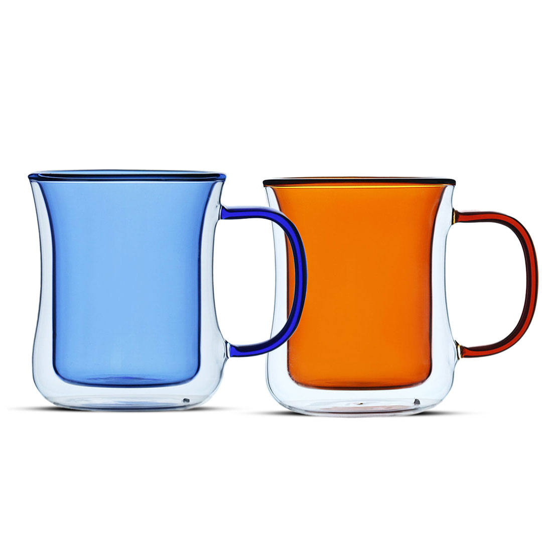 COFFEE COLOR VACCUM GLASS HANDLE CUP 300ML multi-color