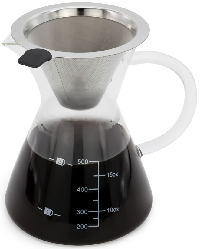 COFFEE GLASS DRIP W SS FILTER 600ml A-23