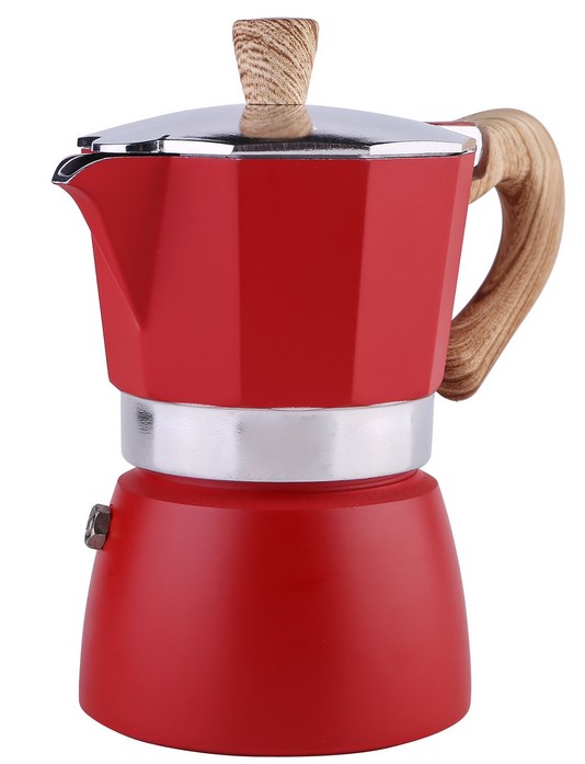 موكا بوت بمقبض خشبي لون احمر150 ملي Coffee moka pot coffee maker 150ml red