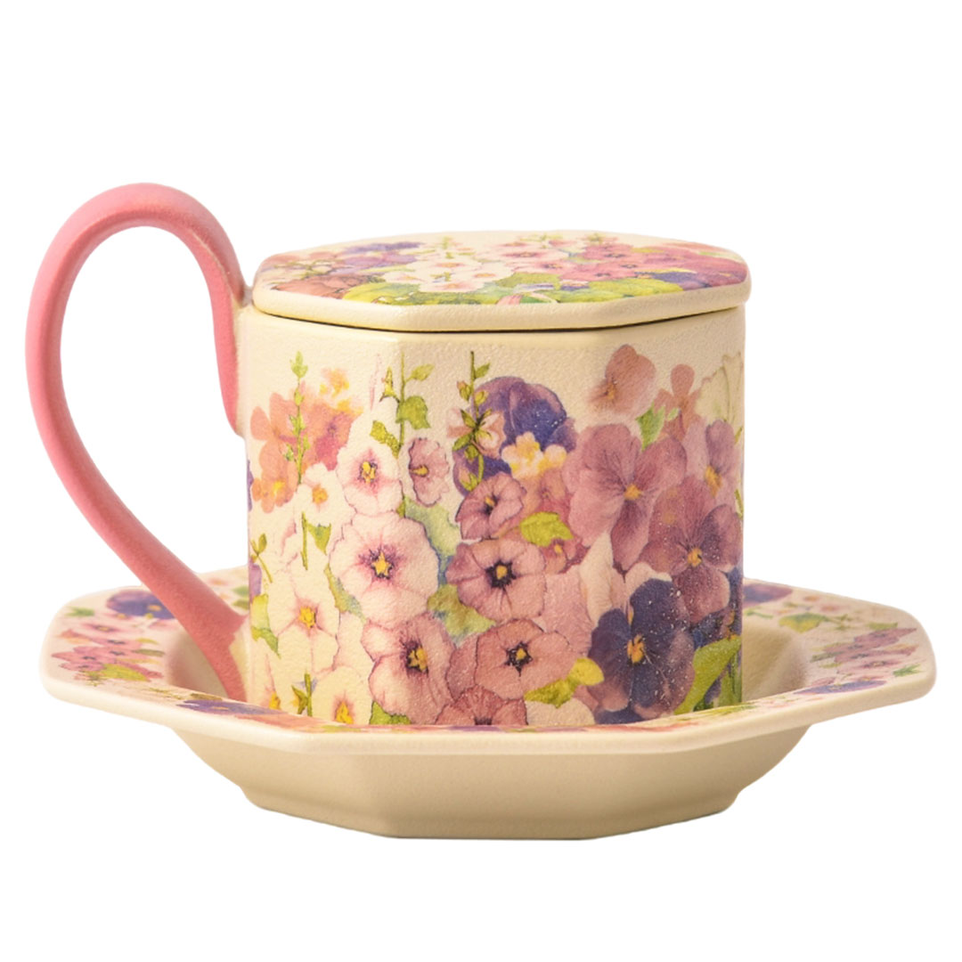 Colorful Beige Octagonal Cup Plate (Cup+Plate+Lid) K-2882