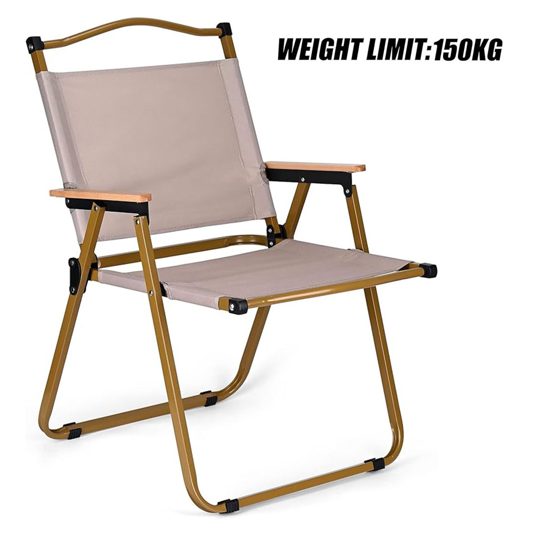 - مصنوع من المعدن بظهر و مقعد قماشي متين و مساند يد خشبية