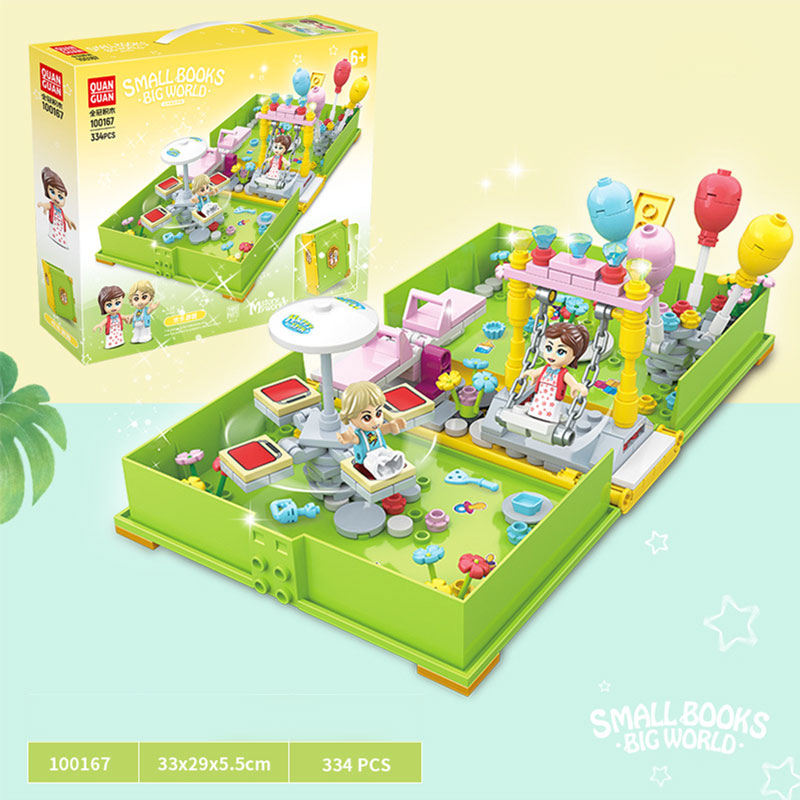 لعبة بناء مكعبات بشكل كتاب يفتح ليشكلحديقة ومنتزه يضم شخصيتين كرتون