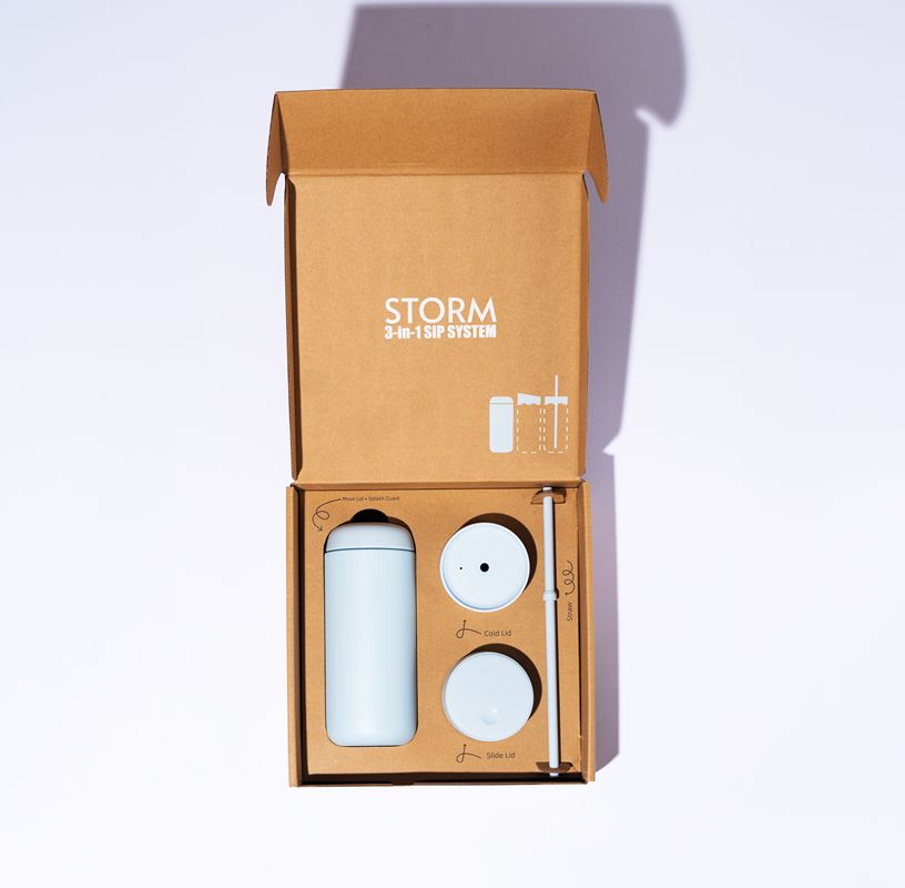 يوفر الصندوق ثلاثة أغطية مختلفة (بالإضافة إلى جسم الكوب) لتلبية احتياجات الشرب المتنوعة: