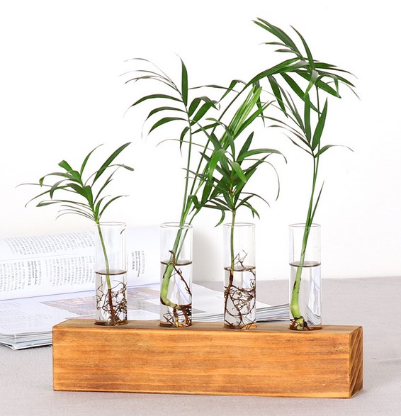 فازة خشبية مع فتحات زجاجية للنباتات الطبيعية Wood decor water plants base c-125